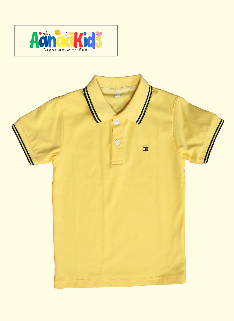 Bright and bold, this yellow polo shirt for boys features a sporty twist with contrasting black borders on the collar and sleeves. Made from soft, breathable pique cotton, it offers both comfort and style for everyday wear. The clean sharp trim detail makes it a standout piece